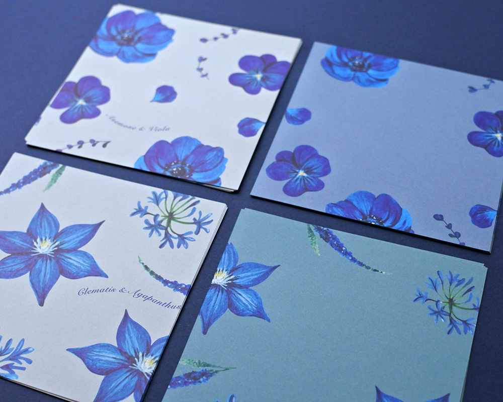 「ビオラ&アネモネ」と、「クレマチス&アガパンサス」2種類のデザインが入っていて、ひとことメッセージやちょっとしたお手紙に使うときなどにちょうどよいボリュームのサイズです。
