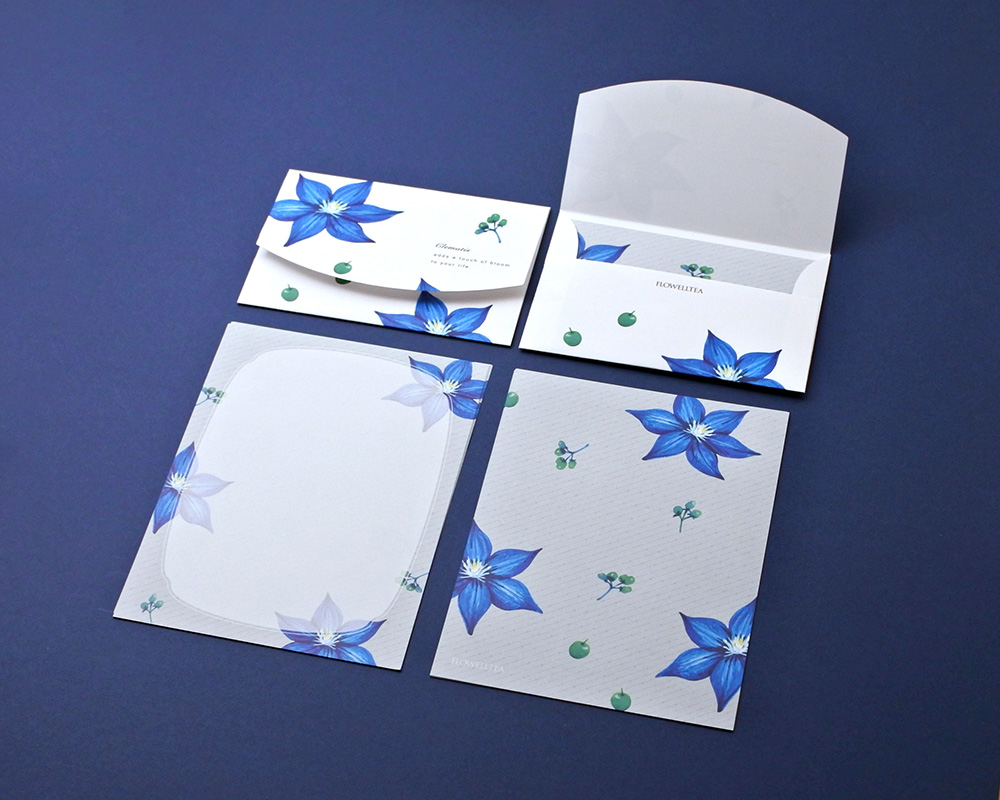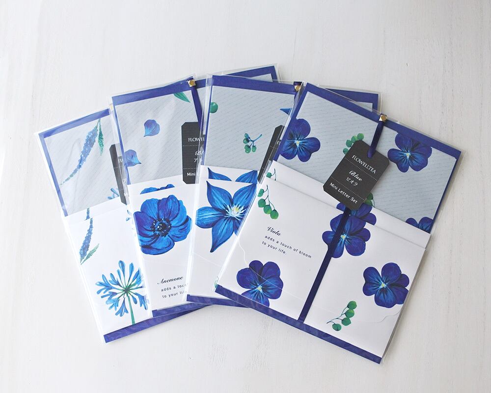 ミニ封筒はピュアホワイトと冴えたブルーのコントラストが映えるデザインに仕上げています。