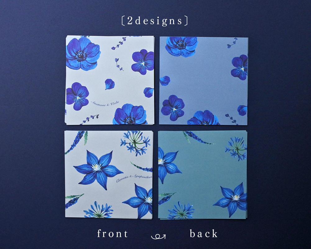 「ビオラ&アネモネ」と、「クレマチス&アガパンサス」2種類のデザインが入っていて、ひとことメッセージやちょっとしたお手紙に使うときなどにちょうどよいボリュームのサイズです。